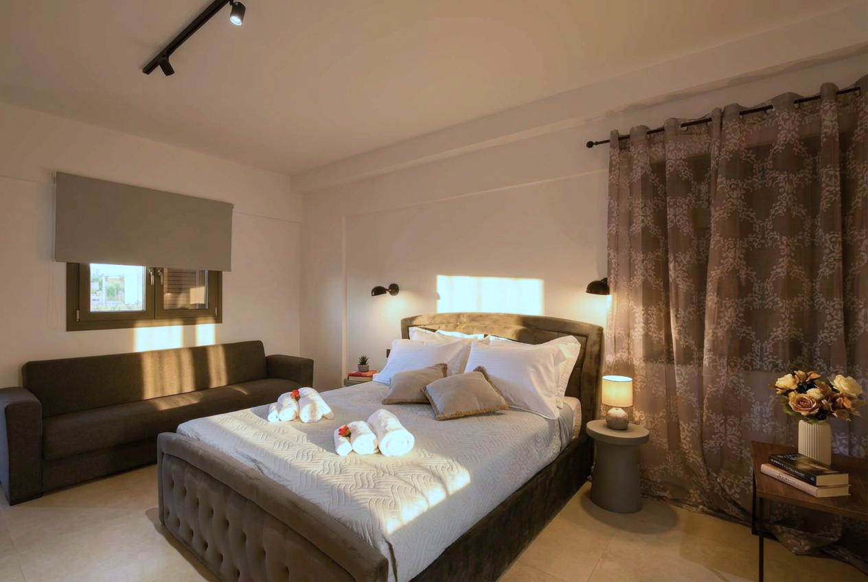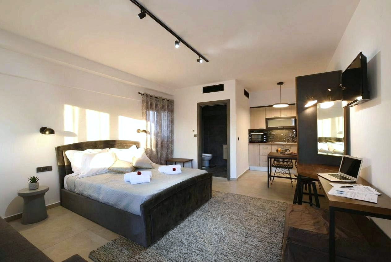 In Junior suite Mars you can enjoy your stay in a comfortable and elegant room of 27 m². It has a king size bed and a sofa bed. Fully equipped kitchen, hairdryer, steam iron and bathroom with shower and all the comforts you need.